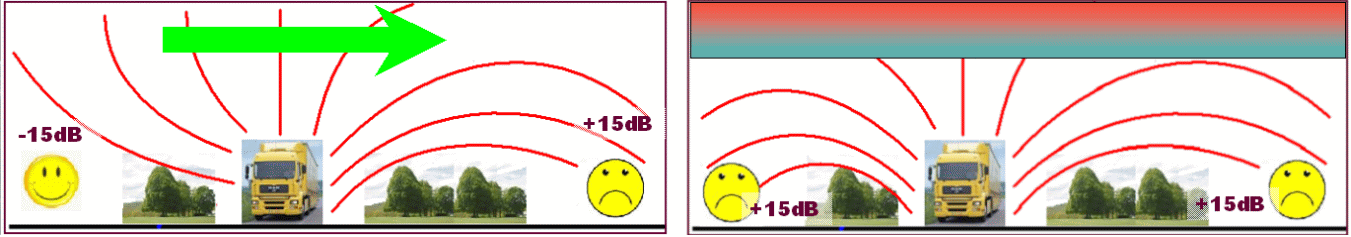Dit hangt vooral van de weersomstandigheden af: zelfs een onmerkbaar windje in de ene of andere richting kan een wereld van verschil maken, door het afbuigen van de geluidsgolven. Net zoals inversie op een heldere avond ervoor kan zorgen dat het ineens lijkt alsof je op de pechstrook van de E17 zelf zit.